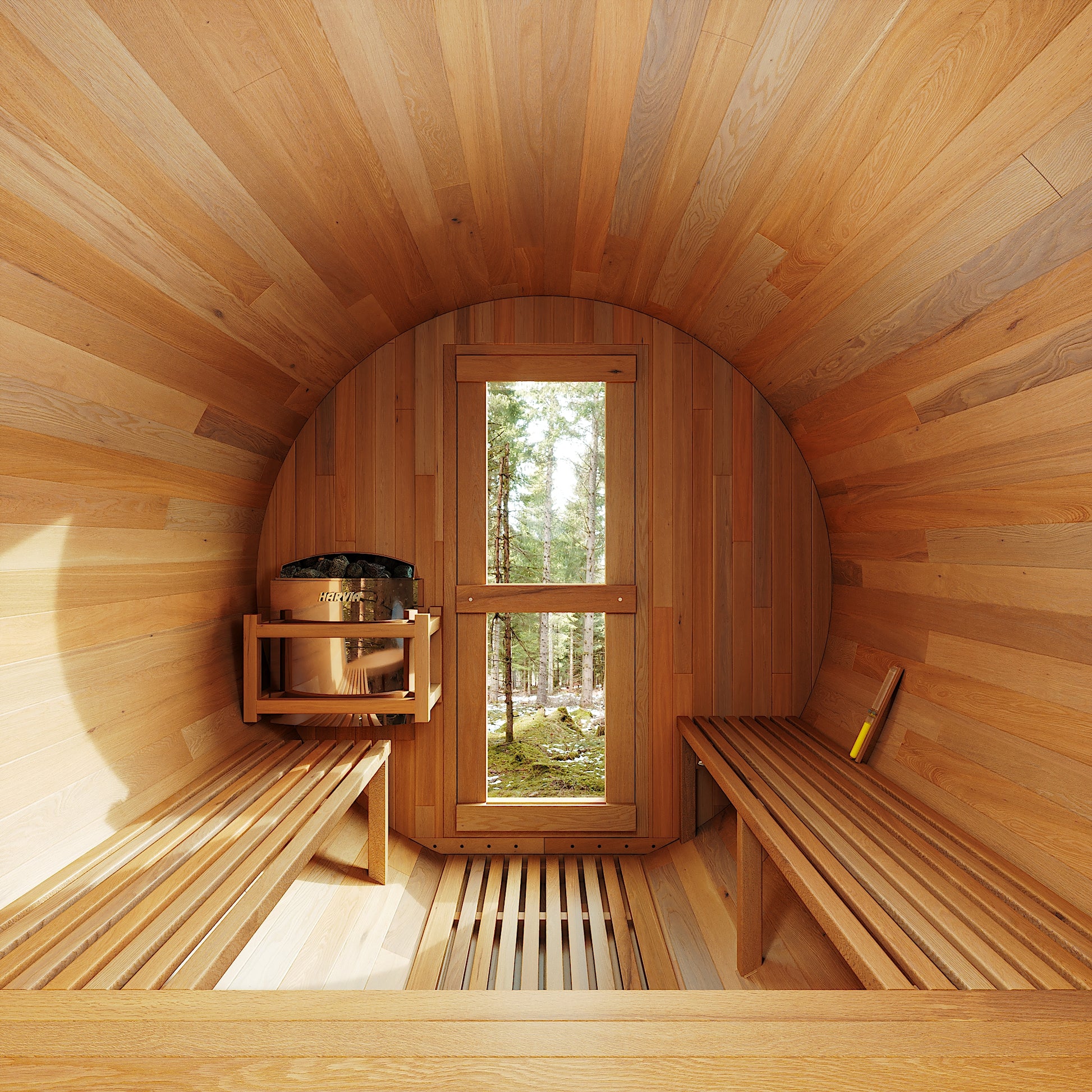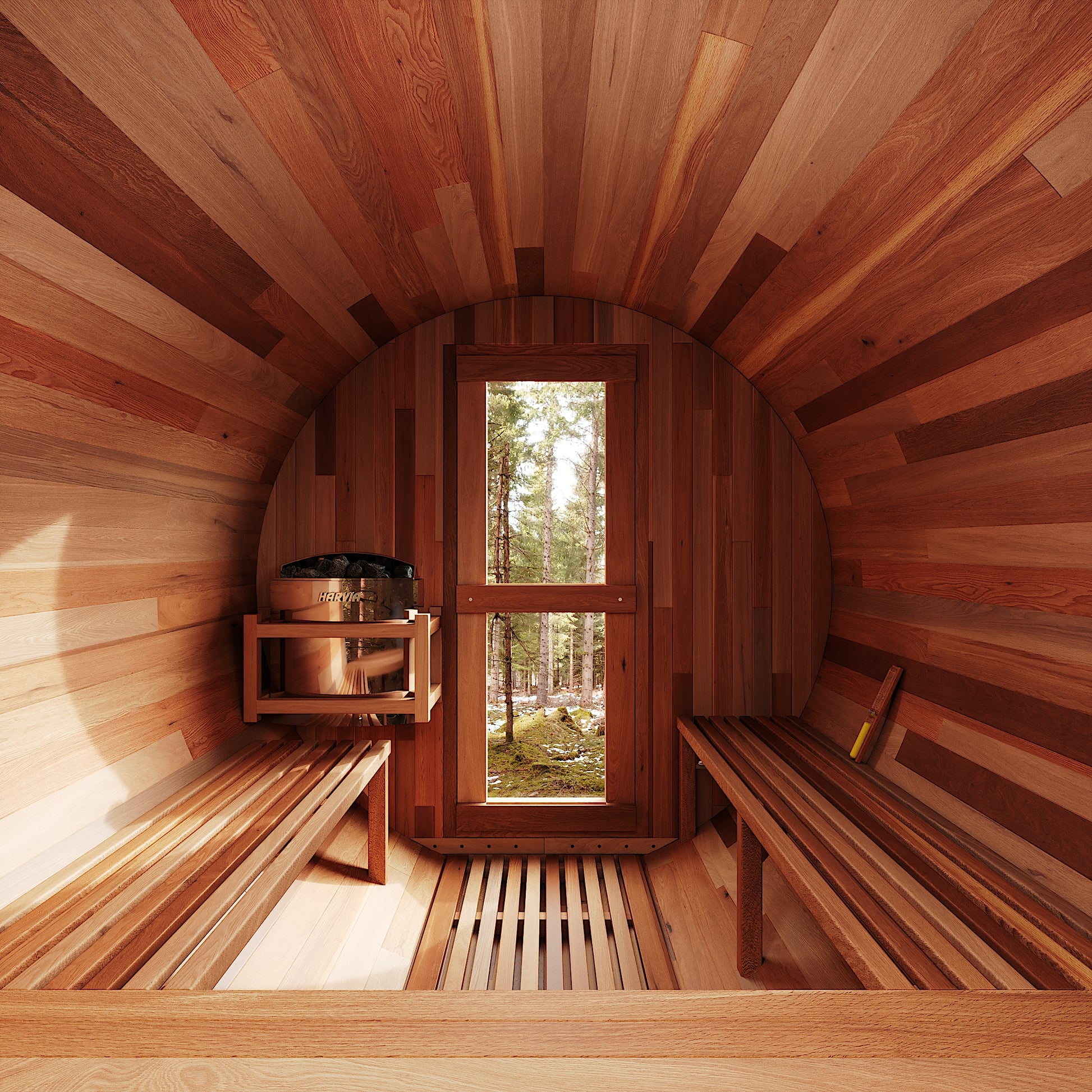 Premium Wood Options: Available in Hemlock or Red Cedar, both prized for natural insulation, durability, and resistance to warping, with Red Cedar offering a rich aroma and enhanced moisture resistance.
