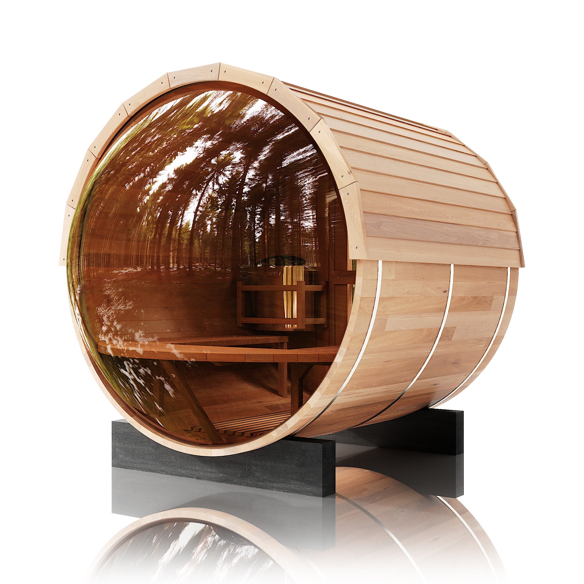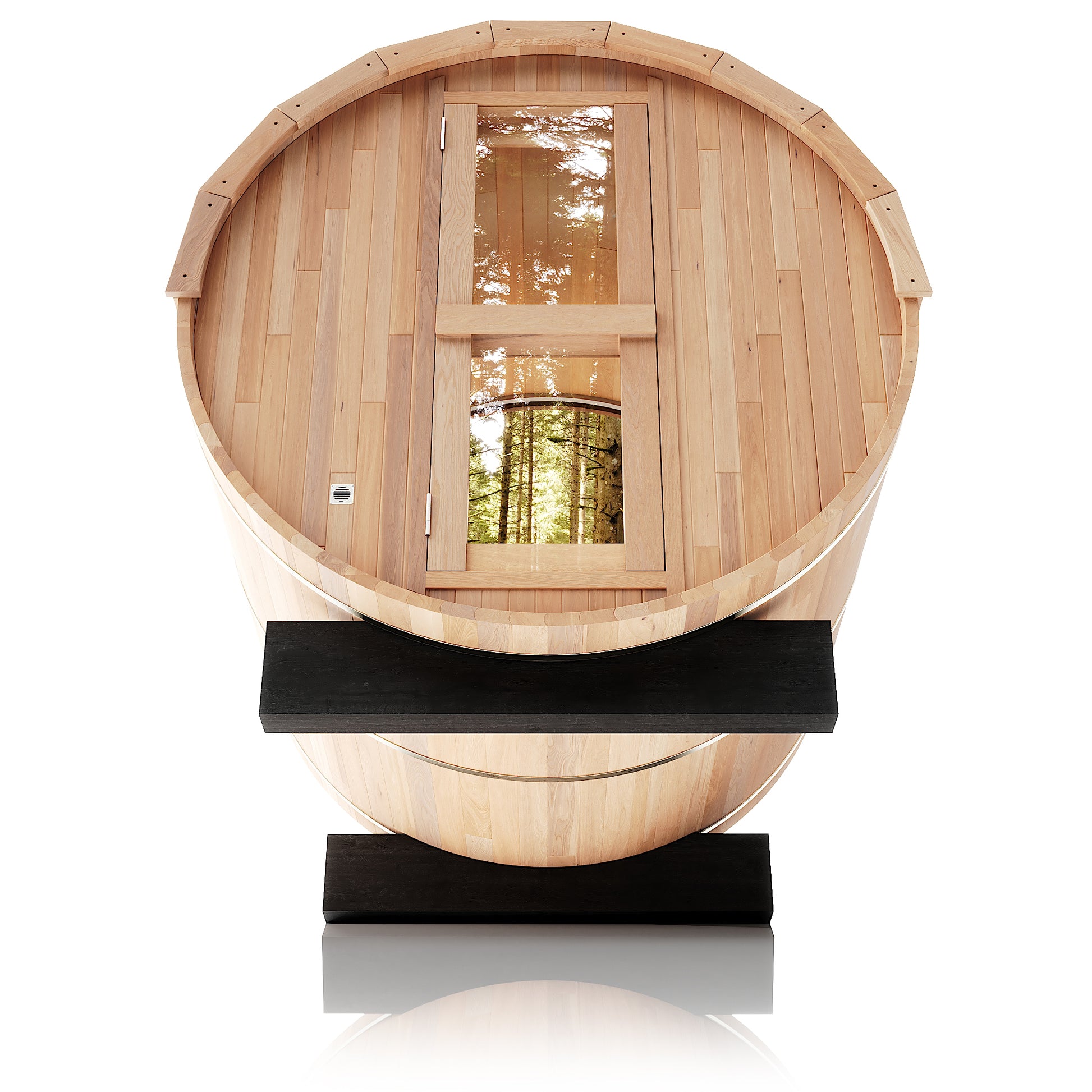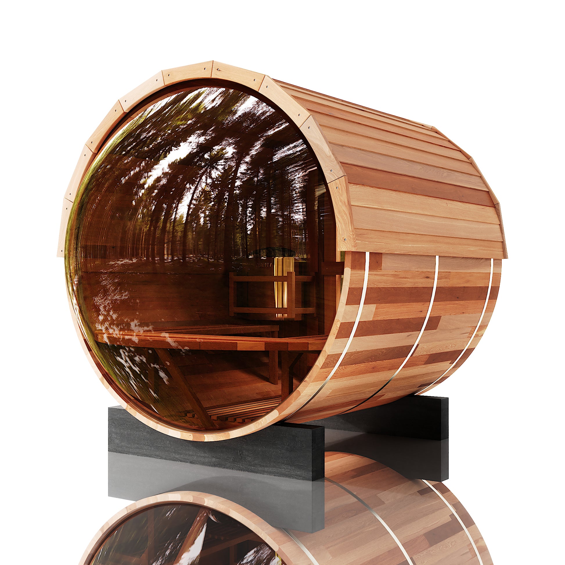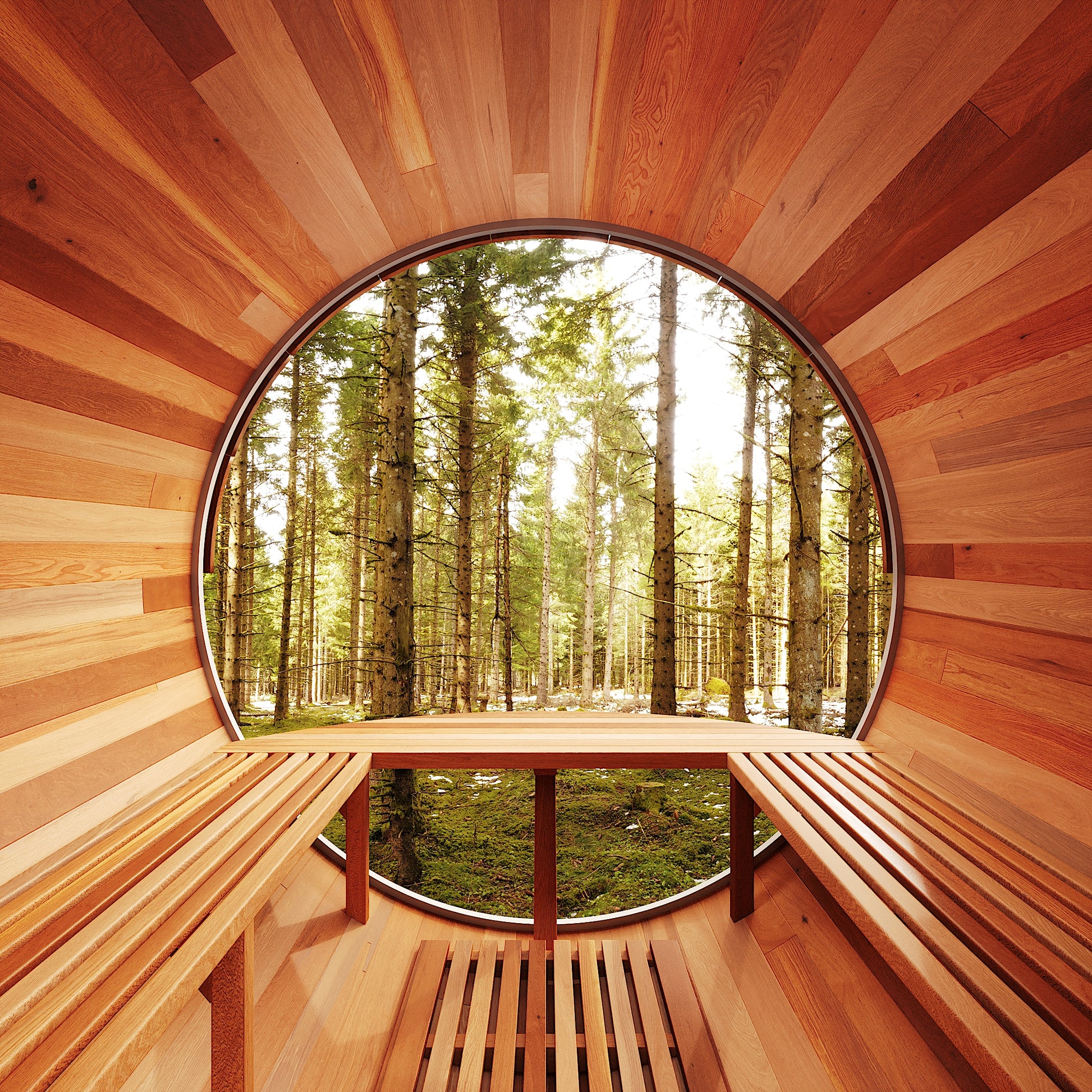 The Trailblazer is our signature barrel sauna with a sweeping panoramic window, made for those who love big views and the beauty of nature as part of their ritual. Designed for up to six people and built for full-spectrum heat and effortless luxury, it’s the perfect sauna for gathering, hosting, and letting the good times flow.